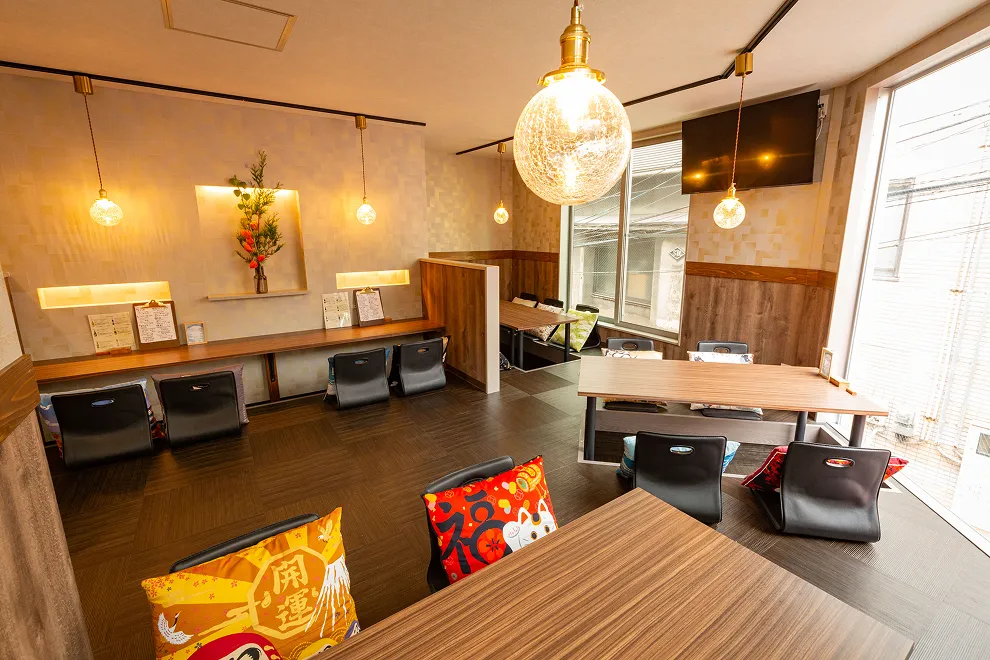 全席禁煙で電源も完備された、快適な和モダン空間。
